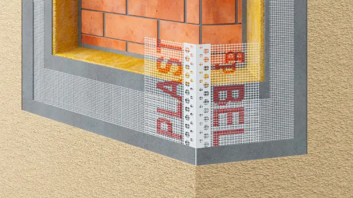 Le profilé d’angle PVC BP4 S avec trame doit être installé sur chaque angle présentant un angle différent de 90° dans le système d’isolation thermique.