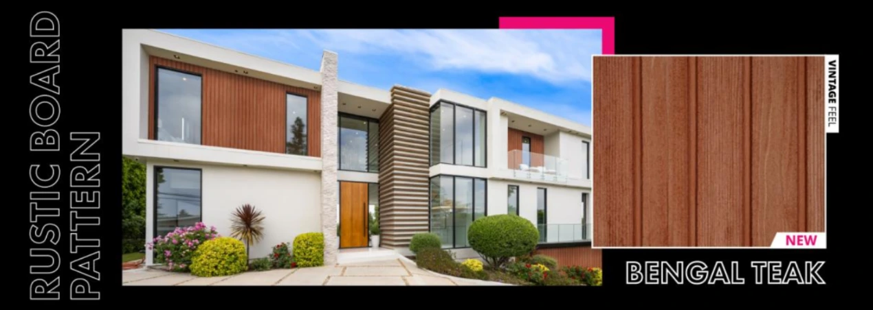 La collection de 6 teintes classiques : pin, chêne, teck, noyer et wengé , a récemment été enrichie de 6 nouvelles propositions. Silver Grey, Light Beige, Steel Grey, White Birch, Dark Brown et Africa Ebony offrent des nuances de bois plus froides et permettent de concevoir des façades selon les tendances architecturales les plus récentes.