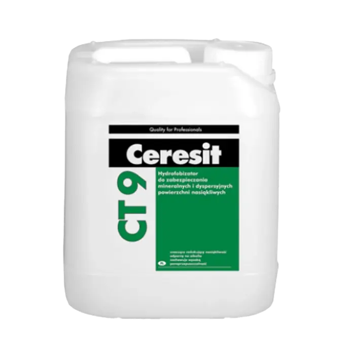 CERESIT® CT 9 est utilisé pour l’imprégnation des enduits minéraux extérieurs, des murs en clinker, des briques apparentes, des revêtements en grès, des peintures minérales ainsi que des tuiles.
