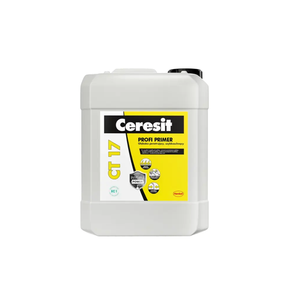 CERESIT® CT 17 Profi est un primaire universel sans solvant pour supports absorbants (murs, sols, plafonds), à usage intérieur et extérieur, avant la pose de carreaux céramiques, le coulage de sols, la pose de revêtements de sol, l'encollage de papiers peints, l'enduisage, la peinture ou la fixation de panneaux d’isolation thermique.