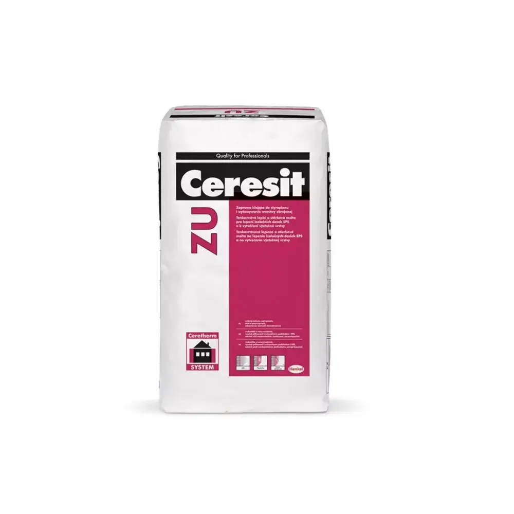 Le mortier CERESIT ZU est utilisé à la fois pour la fixation des panneaux de polystyrène PSE et XPS, ainsi que pour la réalisation d’une couche de protection renforcée lors de l’isolation des bâtiments neufs, ainsi que pour la rénovation thermique.